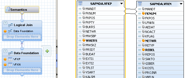 This is a view involving two tables, VFKP and VFKN. Here, the measure NETWR is accumulated per REBEL (VFKP-REBEL, not VFKN-REBEL which is visible in the screenshot. We also need VFKN-REBEL since it is referenced in another view, hence showing).
