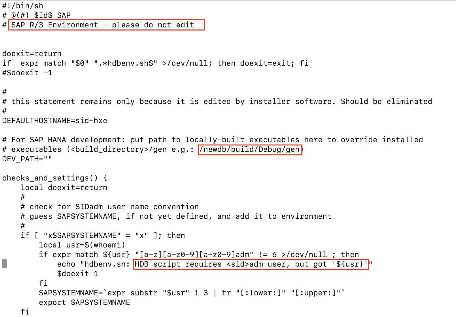 As with HDB, the origins of hdbenv.sh script go back some time, here with reference to R/3.