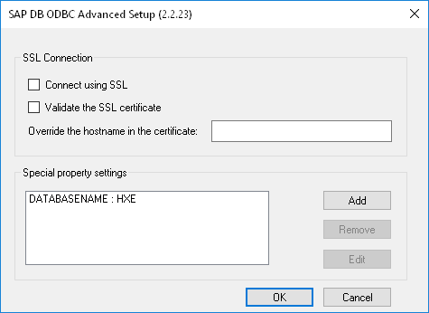 To connect directly to HXE, you can go into “Settings” and add a property called DATABASENAME, pointing to the HXE database.