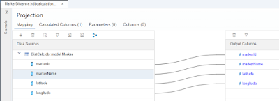 This expression will use the latitude and longitude values that are mapped from the DistCalc table to create a ST_POINT within a ST_GEOMETRY spatial data type. Also the spatial reference system identifier 4326 is used. The mapped columns and the calculated column should look like the images below.